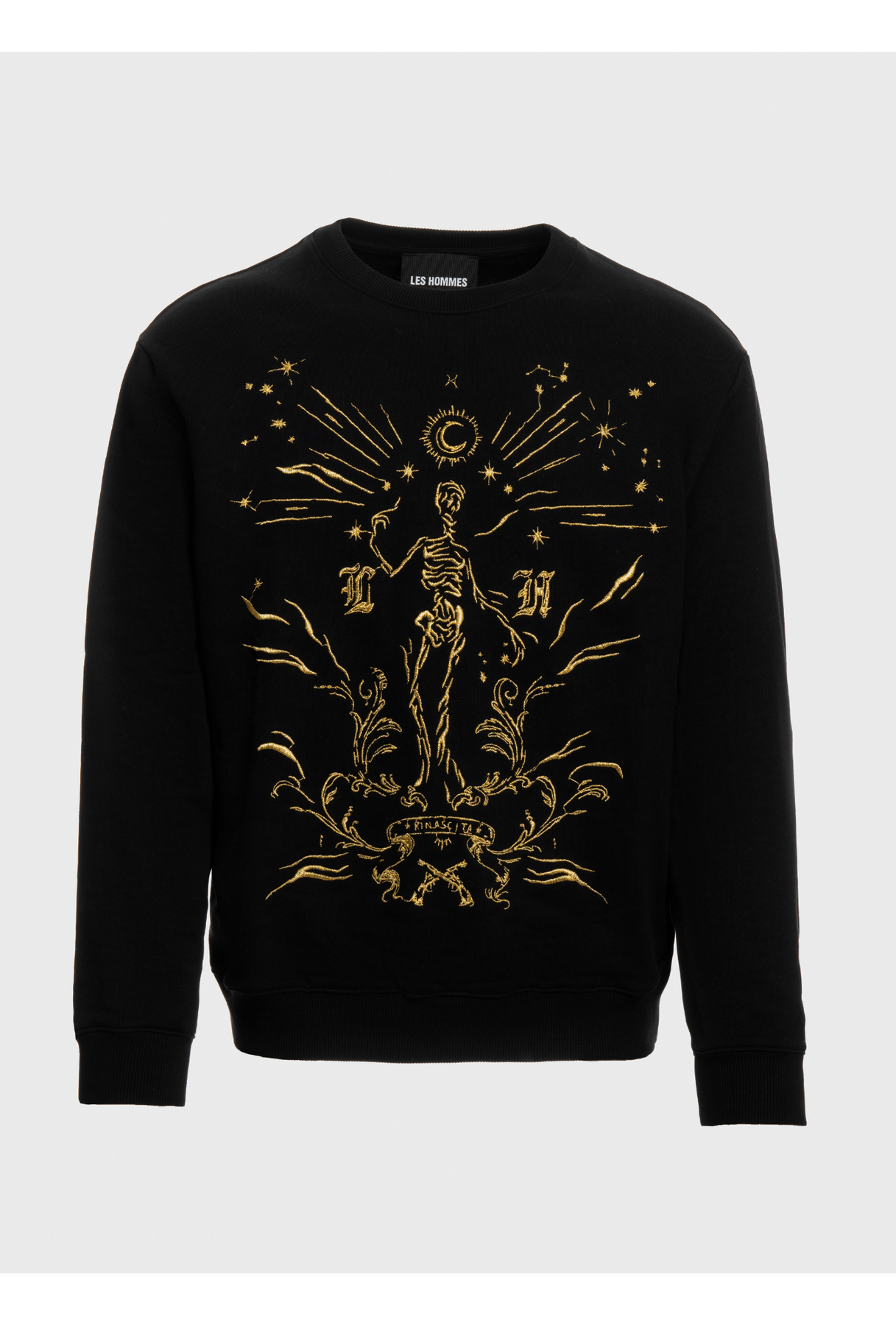 Classic round neck sweater with Rinascita embroidery in the front.